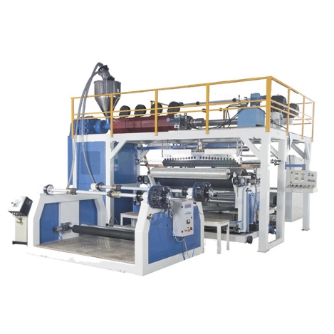 • Laminator Unit – Equipped with a Chilling Roll for cooling and solidifying the molten film, Backup Rollers, and Nip Rollers that provide counter pressure to ensure strong bonding of laminated layers.